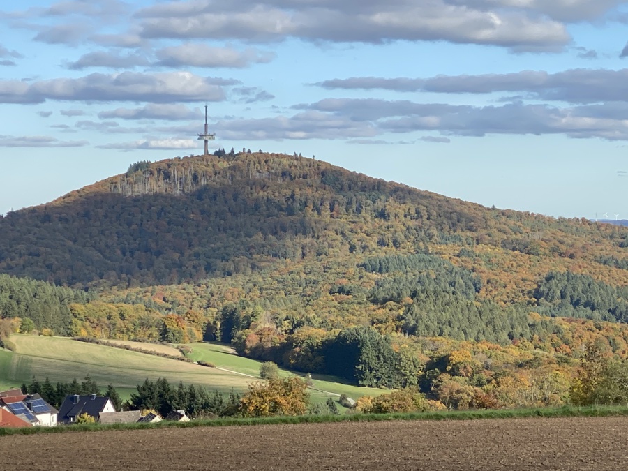 weiter Blick rüber zur 673 Meter hohen Sackpfeife mit ihrem über 200 Meter hohen Sendemast.